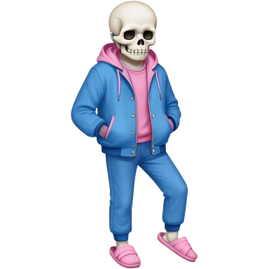 Sans from Undertale with glowing blue eye, skeleton with permanent grin, wearing blue hoodie emoji