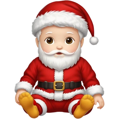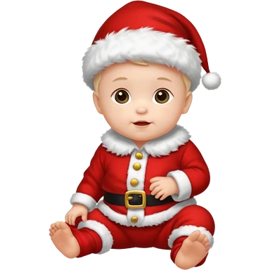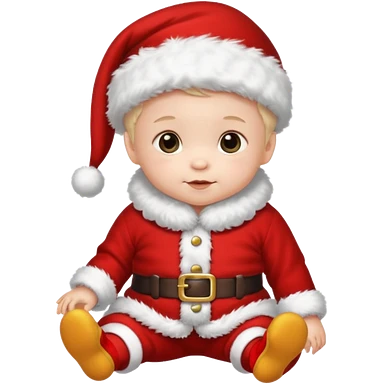 a baby wearing santa clothes and cute fluffy shoes emoji