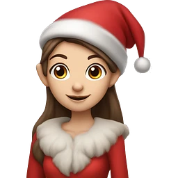 Brunette pale girl elf with red clothes and rosy cheeks With Santa hat emoji