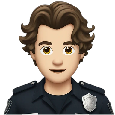 policeman emoji, blue uniform collar and badge visible, head and shoulders only, no cap/hat/headwear, flat emoji style, centered, bold outline, minimal detail, plain background emoji