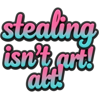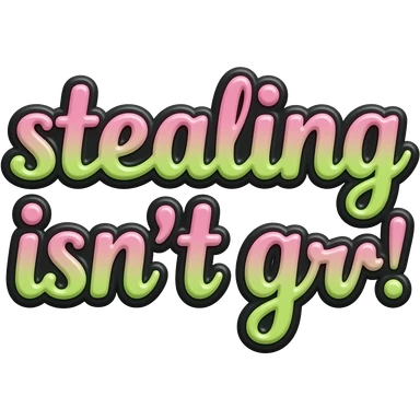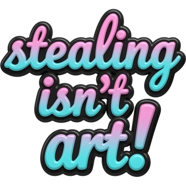 words "stealing isn't art! in hot pink and teal ombre , girly typography lettering with a crisp black color outline border around each letter, detailed, 3d rendering, high definition. must have no emoji icons, no emoji faces, no human figures emoji
