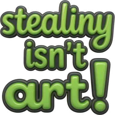 words "stealing isn't art! in neon green, girly typography lettering with a crisp black color outline border around each letter, detailed, 3d rendering, high definition. must have no emoji icons, no emoji faces, no human figures emoji