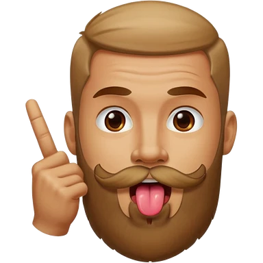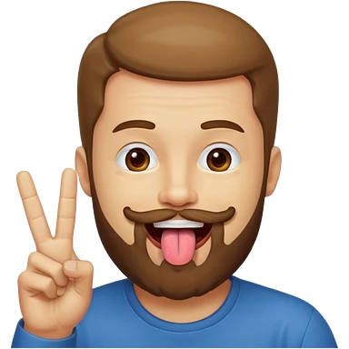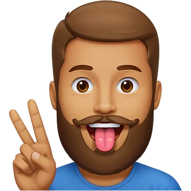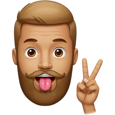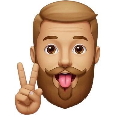 Man with beard sticking tongue out with peace sign under tongue emoji