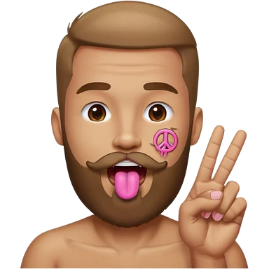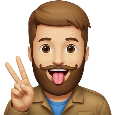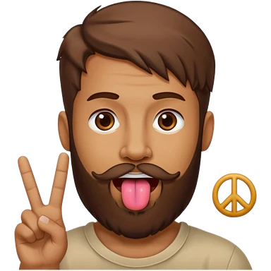 Man with beard sticking tongue out with peace sign up to tongue emoji
