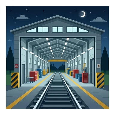 inside train maintence depot building single track perspective emoji