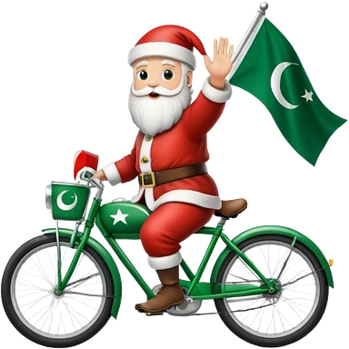 Santa riding on a bike waving a pakistan flag emoji