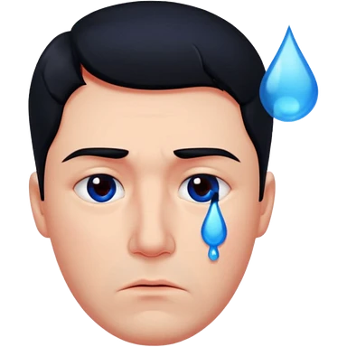 man with black hair. His face is intensely red, visibly flushed and over-reddened, as if he's been crying hard. His expression is sad, and a single blue clear tear flows down his cheek. emoji