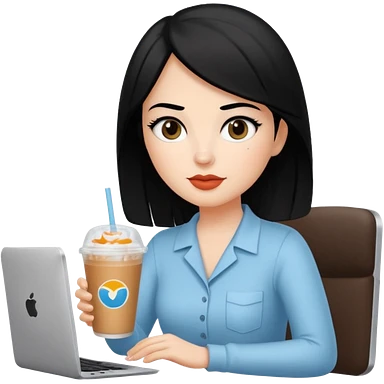 컴퓨터 작업 중 + 아이스 아메리카노(테이크아웃 잔)링거 + 다크서클 + 검은머리 여성 emoji