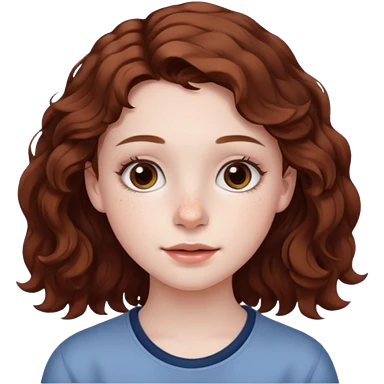15 year old girl with pale skin, dark freckles, rosy cheeks, and wavy brown hair. emoji