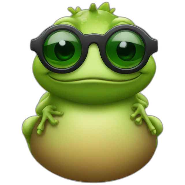 Un sapo tierno con un laso de color verde claro y un vaso de café frío emoji