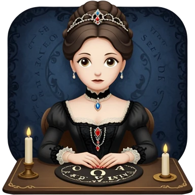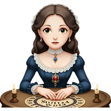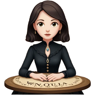 Sarah winchester, the Winchester fortune heiress, sitting att a ouija board emoji | AI Emoji Generator