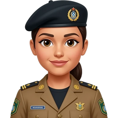 Sargento Gianne Policial militar da bahia feminina morena com cabelo amarrado boina preta e farda marrom e camisa preta por dentro da farda emoji