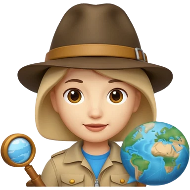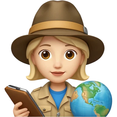 Apple Memoji-style 3D emoji of an explorer with a map and hat, soft shading, rounded shapes, no background. emoji