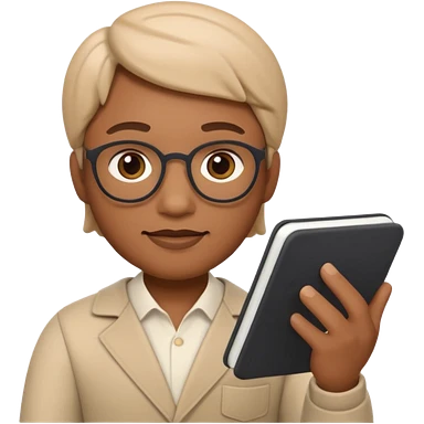 Apple Memoji-style 3D emoji of a playwright with a script in hand, smooth gradients, rounded shapes, no background. emoji