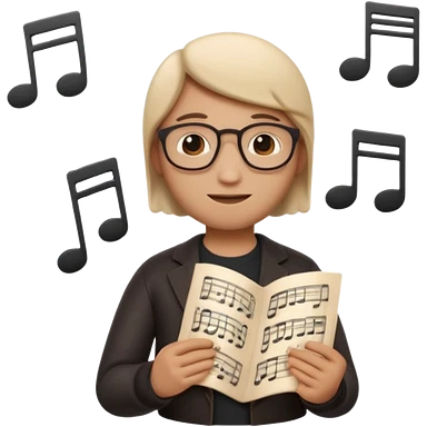 Apple Memoji-style 3D emoji of a composer holding sheet music, soft shading, rounded shapes, no background. emoji