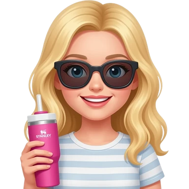 Sassy long blonde hair girl wearing sunglasses holding pink Stanley bottle emoji