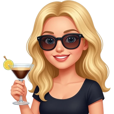 Sassy long blonde hair girl wearing sunglasses holding espresso martini emoji