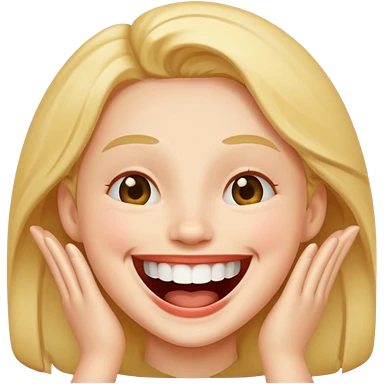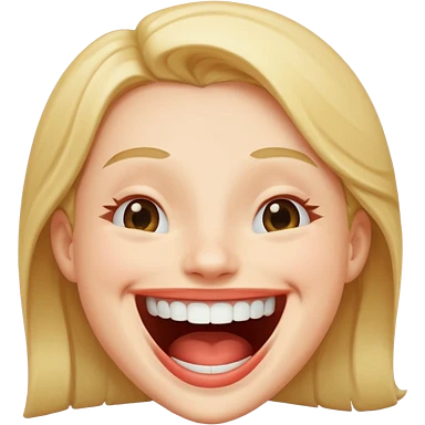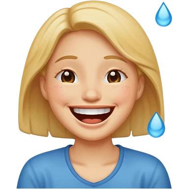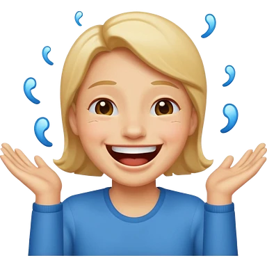 Girl Blonde short wavy hair, blue eyes, cute blue top, long lashes, pink lips, 👄 big smile emoji