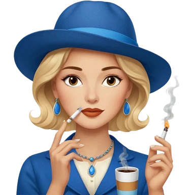 a woman with a slight smile smoking a cigarrette while holding a blue hardcover of Anna Karenina by Liev Tolsoi in a cafeteria full of queer people being nice and ordering specialty coffee from nigeria emoji