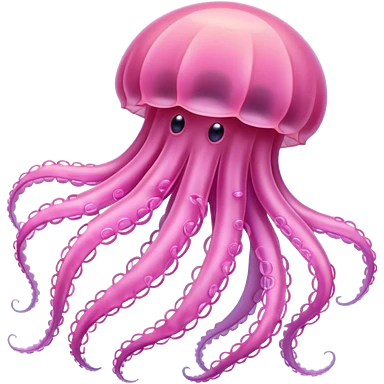 adorable jellyfish with shiny plastic look, huge sparkling eyes, tiny body, friendly smile, rosy cheeks, fine textures, soft pastel colors with bright accents, small heart accessory, detailed shading emoji
