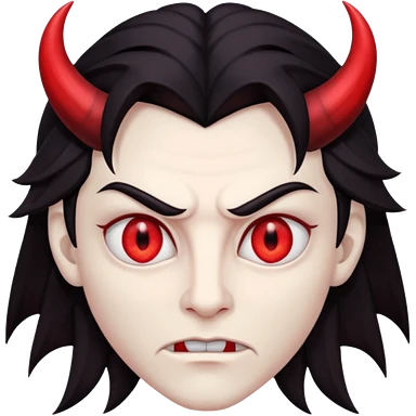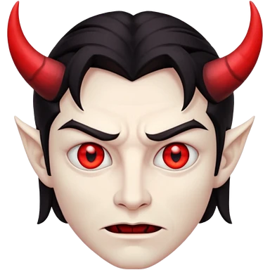 Satan with red skin, long black hair, black sequin baggy pants, shirtless with necklace emoji