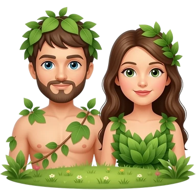 Adam and Eve wear fig leaves in the garden of Eden in the background emoji