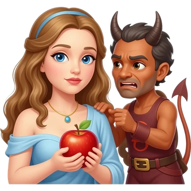Eve being tempted by Satan with the apple emoji