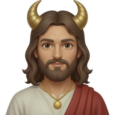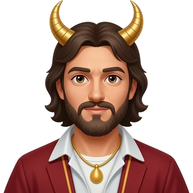 Satan from Christian Mythology with red skin, red eyes, long black hair, black metallic toga, black necklace emoji