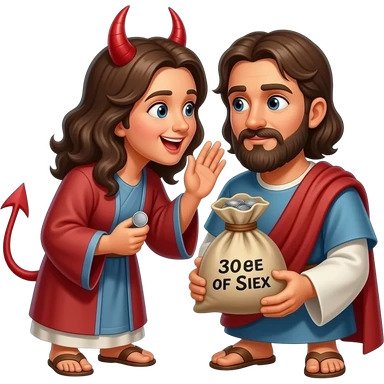 Satan whispering in Judas’s ear to betrayal Jesus for 20 pieces of silver emoji