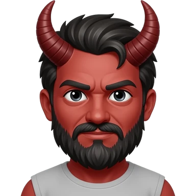 Satan from Christian Mythology with red skin, red eyes, long black hair, black metallic toga, black necklace emoji