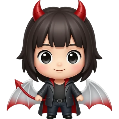 Satan from Christian Mythology with red eyes, long black hair, black metallic toga emoji