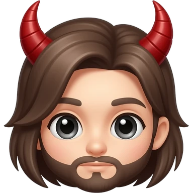 Satan from Christian Mythology with red skin, red eyes, long black hair, black metallic toga, black necklace emoji