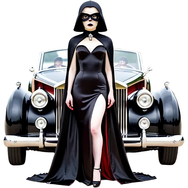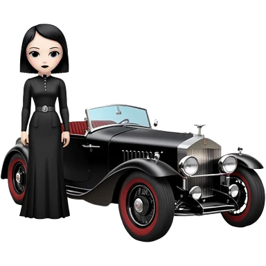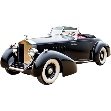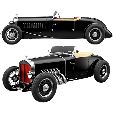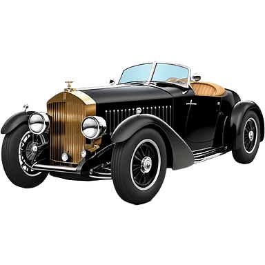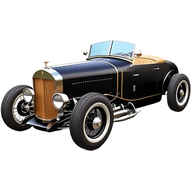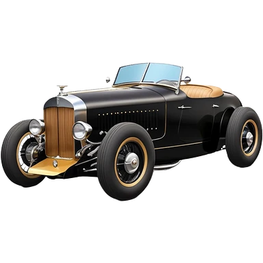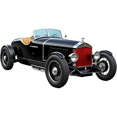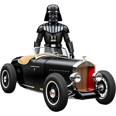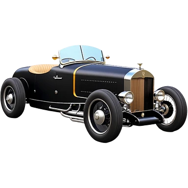 Satanic Darth Vader black Bare bones (channeled cowl) drag racing and speed record modified (fenders removed) chopped streamlined sporty roadster that is a (stripped down) hot street rodded engine sports car 1932 Rolls Royce Woody futuristic wide racing wheelsemoji