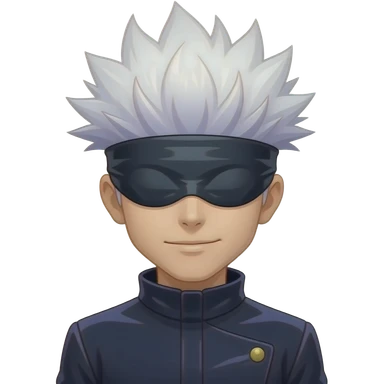 "Satoru Gojo, male anime character, spiky silver hair, blue eyes or blindfold, black sorcerer outfit, tall and athletic, confident pose, anime style, dramatic lighting." emoji