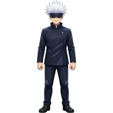 "Satoru Gojo, male anime character, spiky silver hair, blue eyes or blindfold, black sorcerer outfit, tall and athletic, confident pose, anime style, dramatic lighting." emoji