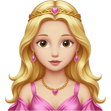 Venus, Goddess of Love from Gods and Goddesses with long golden blonde hair, pink outfit emoji