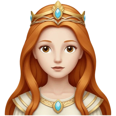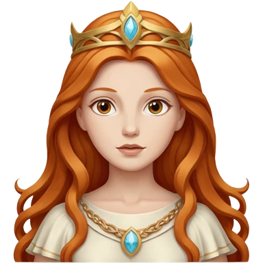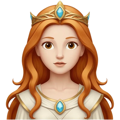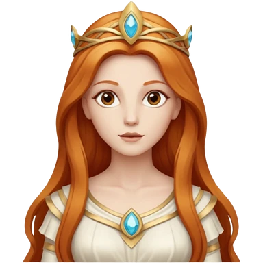 Minerva, Goddess of Wisdom from Gods and Goddesses with long reddish blonde hair, ivory outfit emoji