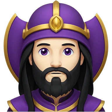 Pluto, God of Death from Gods and Goddesses with long black hair and beard, deep purple outfit emoji