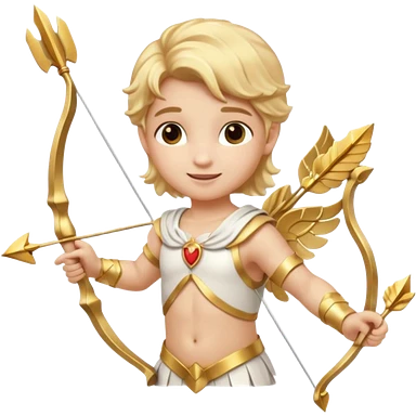 Cupid, God of Love from Gods and Goddesses with golden blonde hair, white and gold outfit emoji