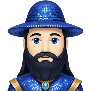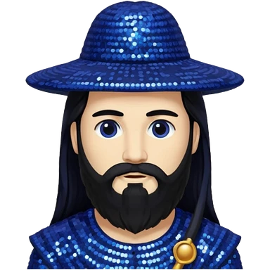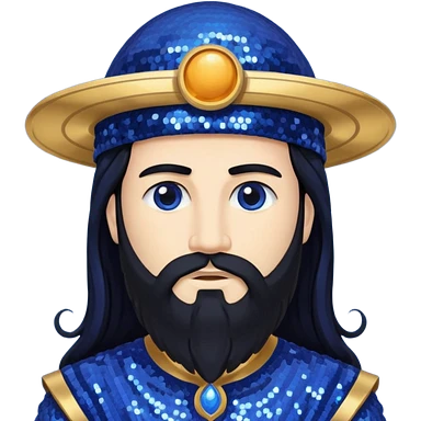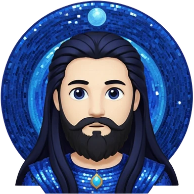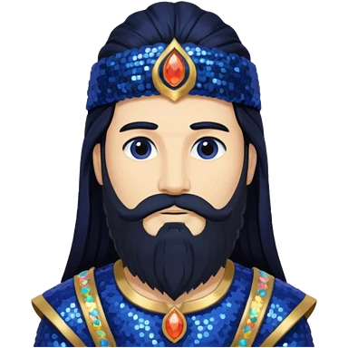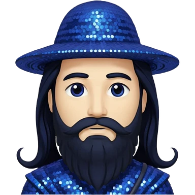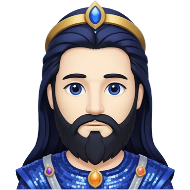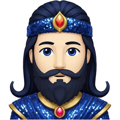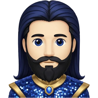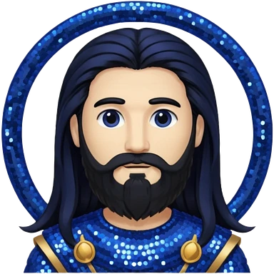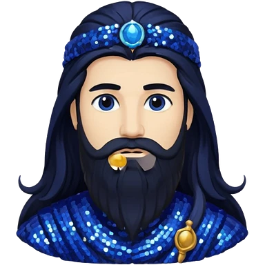Saturn, God of Time from Gods and Goddesses with long black hair and beard, indigo sequin outfit emoji