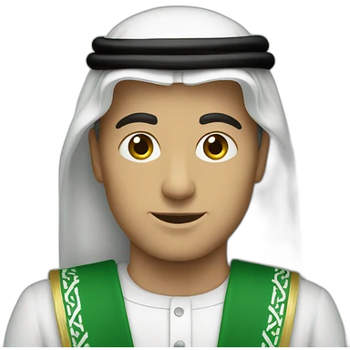 Light skinned Boy with black short curly hear and beard and glasses wearing a white astronaut suit with the saudi flag behind him emoji