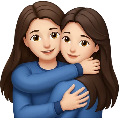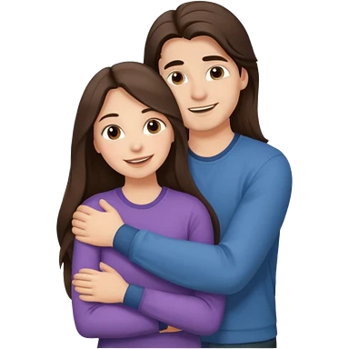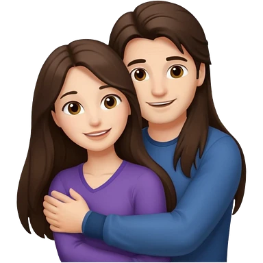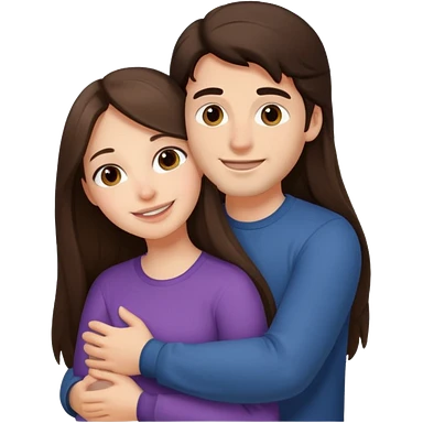 A happy boyfriend and girlfriend hug. She is brunette sexy with long hair emoji