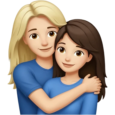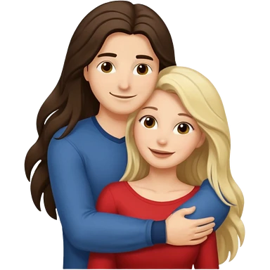 A happy boyfriend and girlfriend hug. She is brunette sexy with long hair. He is blonde emoji