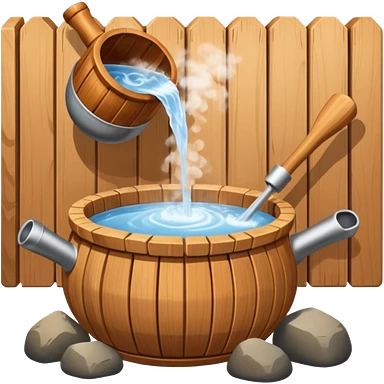 Sauna wooden bucket and ladle emoji
