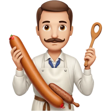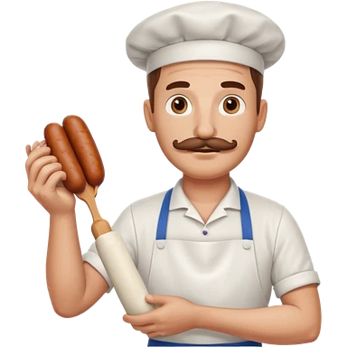 sausage-processing droid. retro-futuristic style. top is a circular industrial meat grinder with rotating gears and blades. Two robotic arms feed material into grinder. Sausage links extrude from the rear like factory. The body is metallic, compact, and floats above the ground.no legs. Dark humor emoji