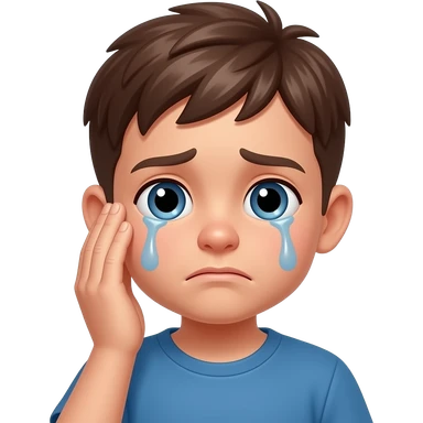 A boy holding ear's sad and saying sorry emoji