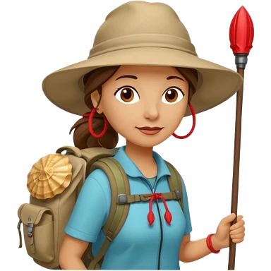 pilgrim walking with walking stick and scallop shell emoji