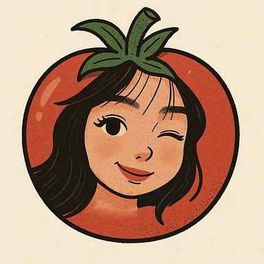 Ghép khuôn mặt trong ảnh này vào một trái cà chua, giữ nét dễ thương và tự nhiên, nền đơn giản, phong cách hoạt hình. emoji
