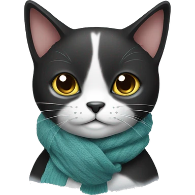 Apple Emoji-style cat head with black fur, tinted purple glasses, pink scarf with a geometric pattern, and large pink eyes. The emoji should only feature the cat's head with no additional body parts. emoji
