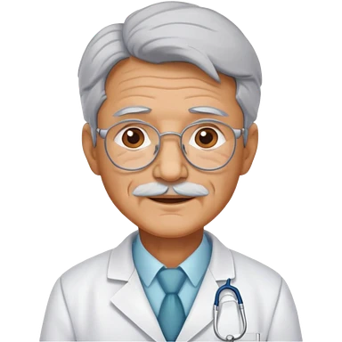A dentist in a white coat smiles widely with snow-white teeth emoji